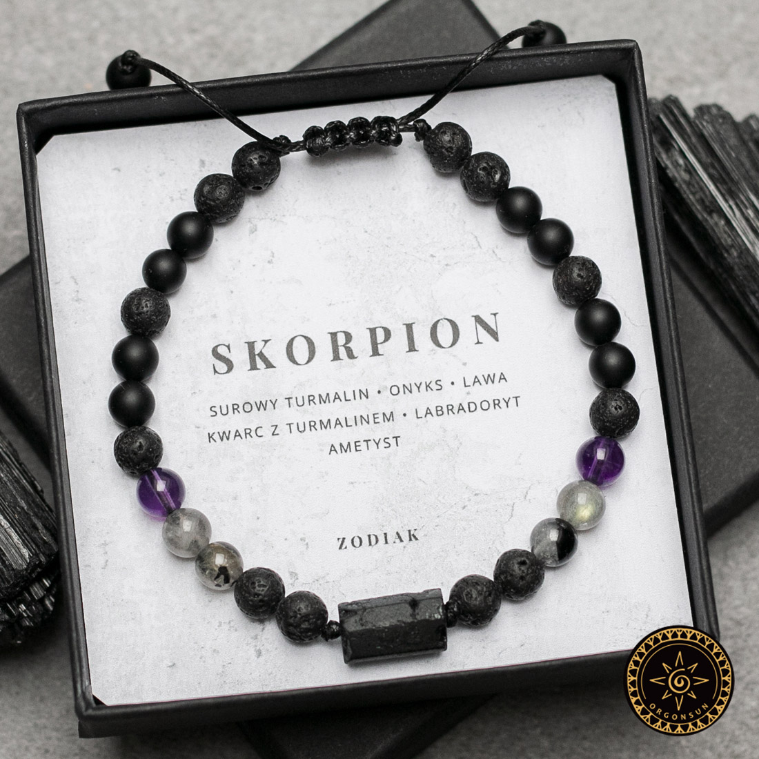 Zodiak Skorpion – bransoletka męska z surowym Turmalinem.